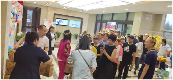 8月31日下午,新洪源公司一樓大廳張燈結(jié)彩,喜氣洋洋。師傅正在現(xiàn)場(chǎng)為55位壽星做生日蛋糕。